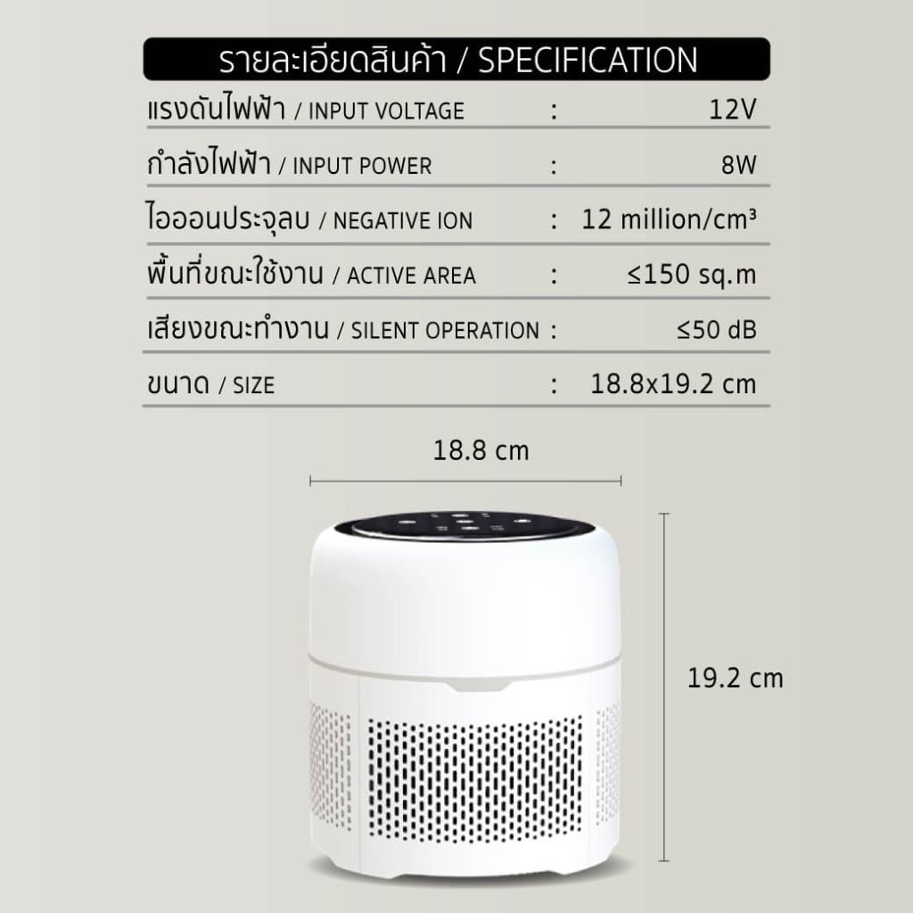 รายละเอียด เครื่องฟอกอากาศตั้งโต๊ะ ขนาดหม้อหุงข้าว