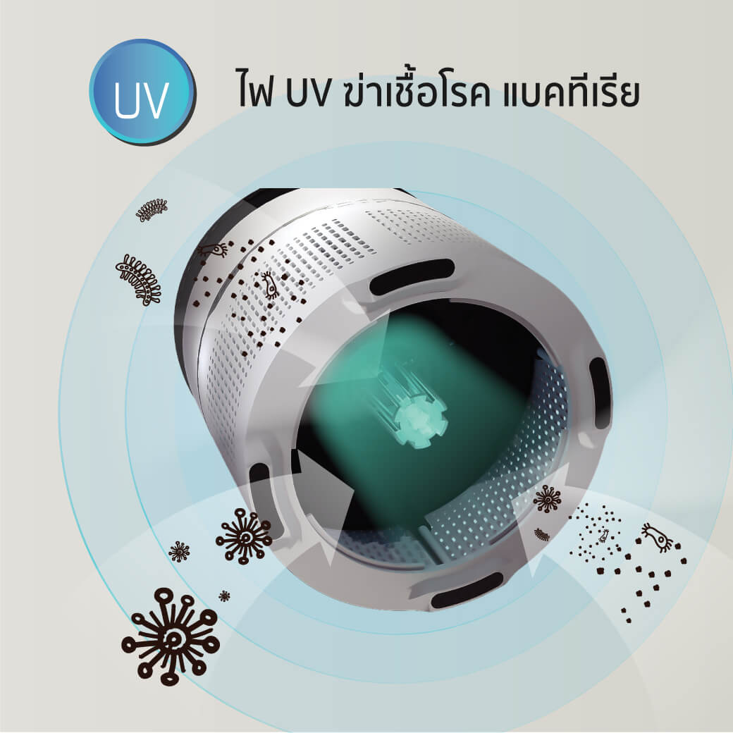 - พร้อมแสง UV กำจัดและยับยั้งการเติบโตของแบคทีเรียในอากาศ พร้อมปล่อยไอออนประจุลบ เปลี่ยนอากาศภายในห้องให้สะอาดบริสุทธิ์