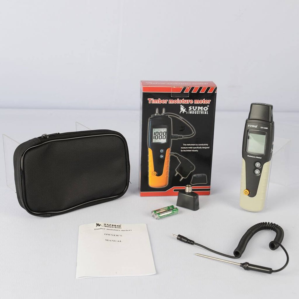 - เครื่องวัดความชื้นไม้ DT-129B เป็นเครื่องวัดความชื้นนำไฟฟ้าที่ออกแบบมาสำหรับใช้กับงานไม้ ใช้ในการวัดระดับความชื้นในไม้แปรรูป (กระดาษแข็ง, กระดาษ) และวัสดุชุบแข็ง (ปูนพลาสเตอร์, คอนกรีต และ ปูน) หน้าจอจะแสดงระดับความชื้น เครื่องมือมีการปรับค่าเฉลี่ยสำหรับไม้ยุโรปตามอุณหภูมิไม้20ºC.พร้อมโพรบระยะไกลหลากหลายรุ่นสำหรับมืออาชีพ