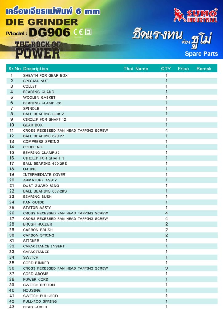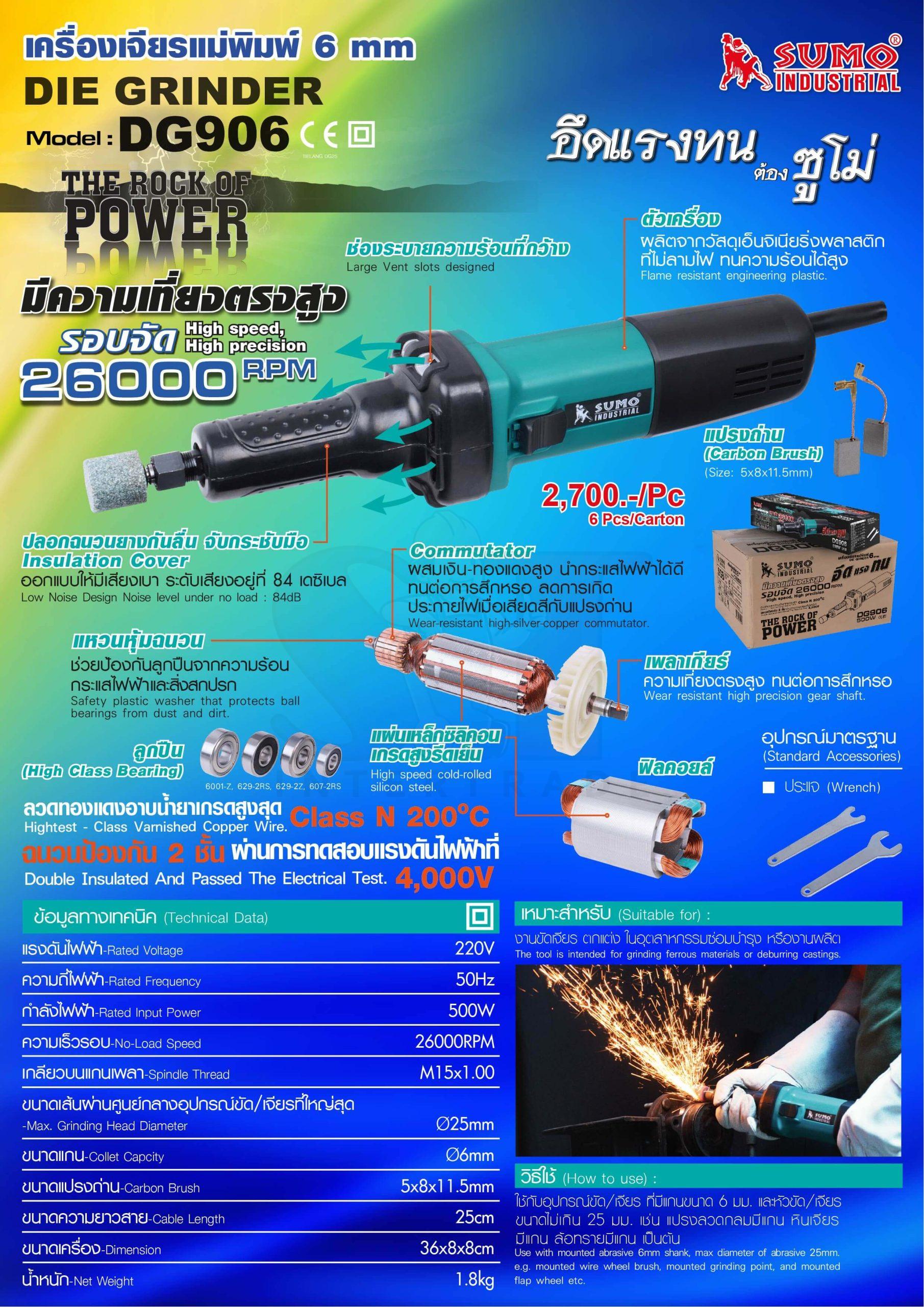 เครื่องเจียรแม่พิมพ์แกน 6 มม. รุ่น DG906 SUMO