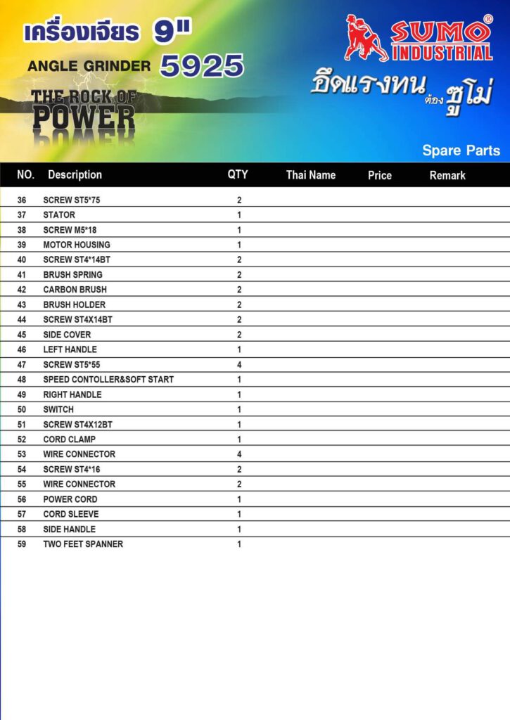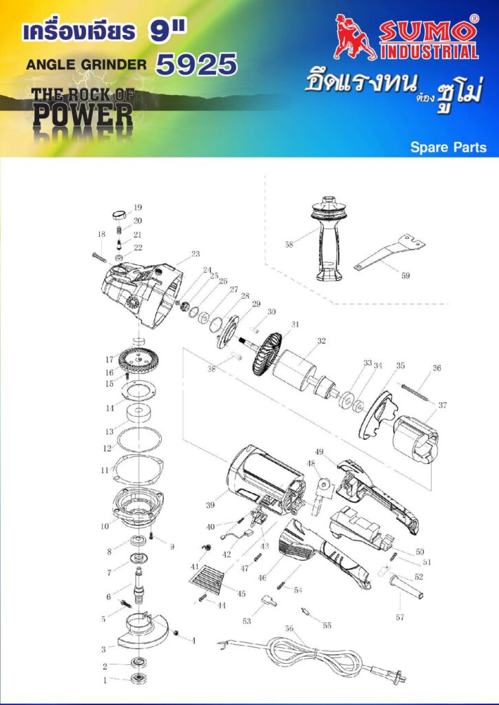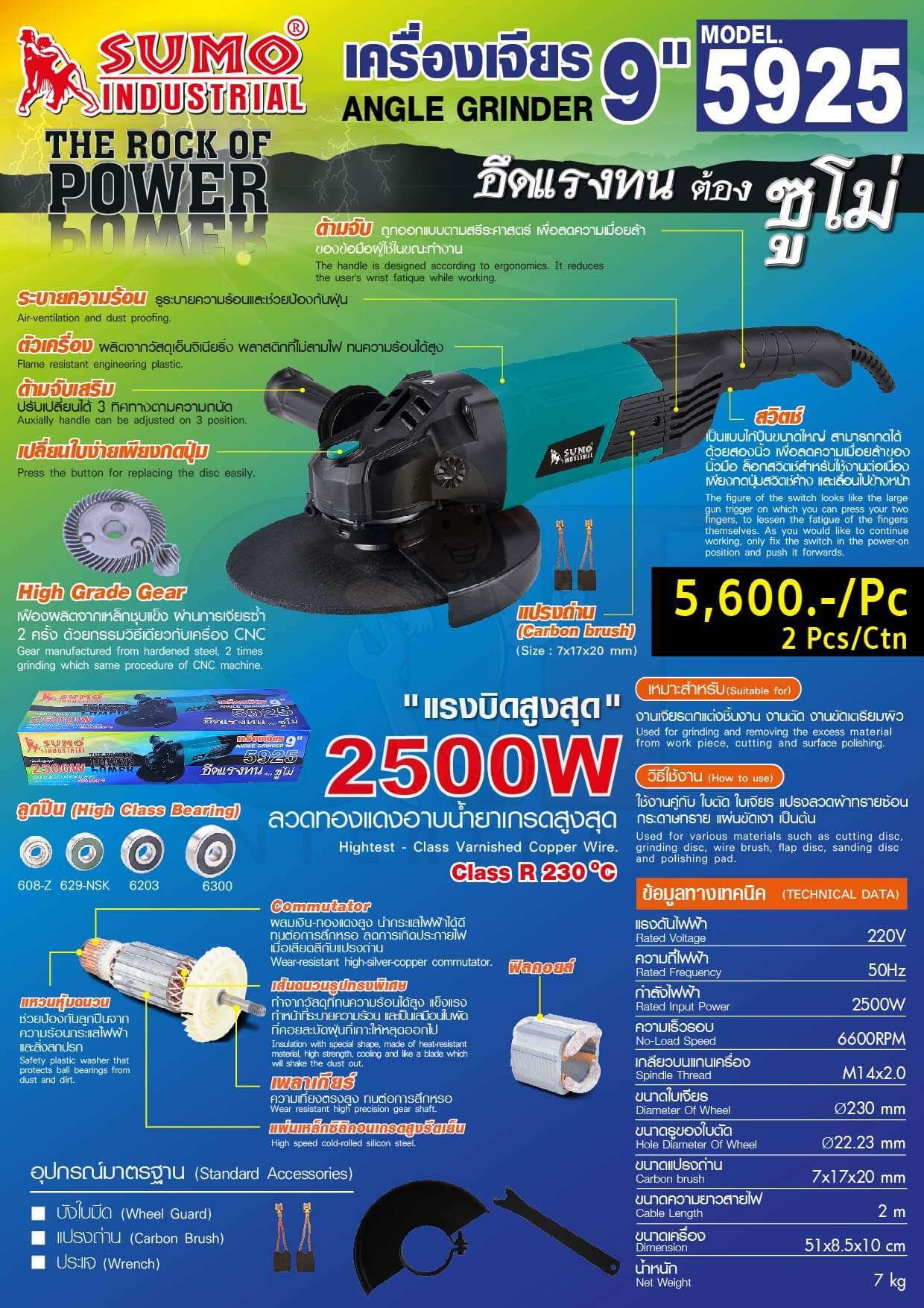 เครื่องเจียร, เครื่องเจียร 9 นิ้ว, เครื่องเจียร 9 นิ้ว รุ่น 5925, เครื่องเจียร SUMO, เครื่องเจียร ราคา, ใบตัด, ใบเจียร, แปรงลวด, ผ้าทรายซ้อน, กระดาษทราย, แผ่นขัดเงา, เจียร, Angle Grinder 9″ 5925 SUMO, Angle 5925, Angle Grinder 9″ 5925