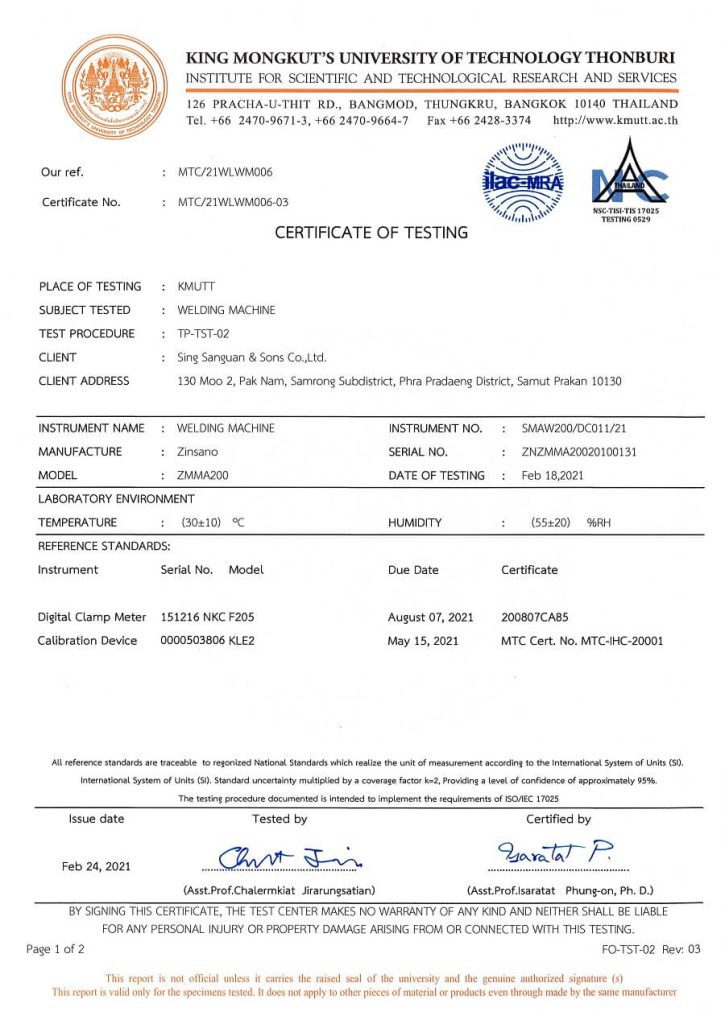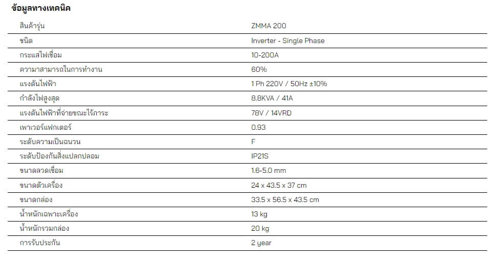 เครื่องเชื่อม INVERTER ZINSANO ZMMA200