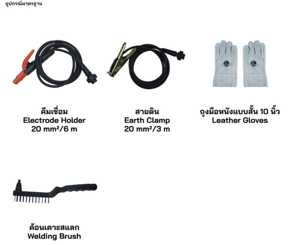 - สายเชื่อมยาว 6 m สายดินยาว 3 m