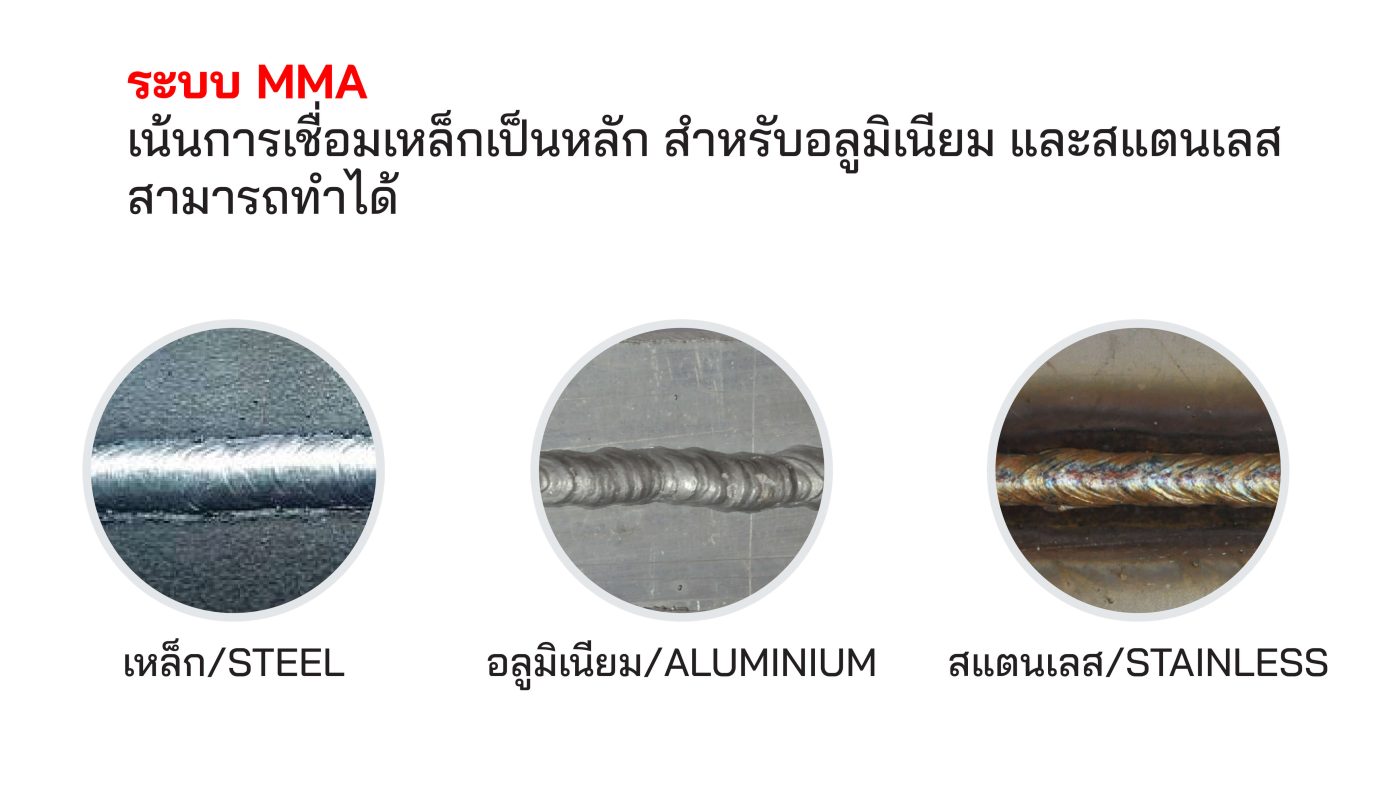 - มีระบบ ARC FORCE ช่วยเพิ่มกระแสเชื่อมไม่ให้ลวดเชื่อมติดชิ้นงาน