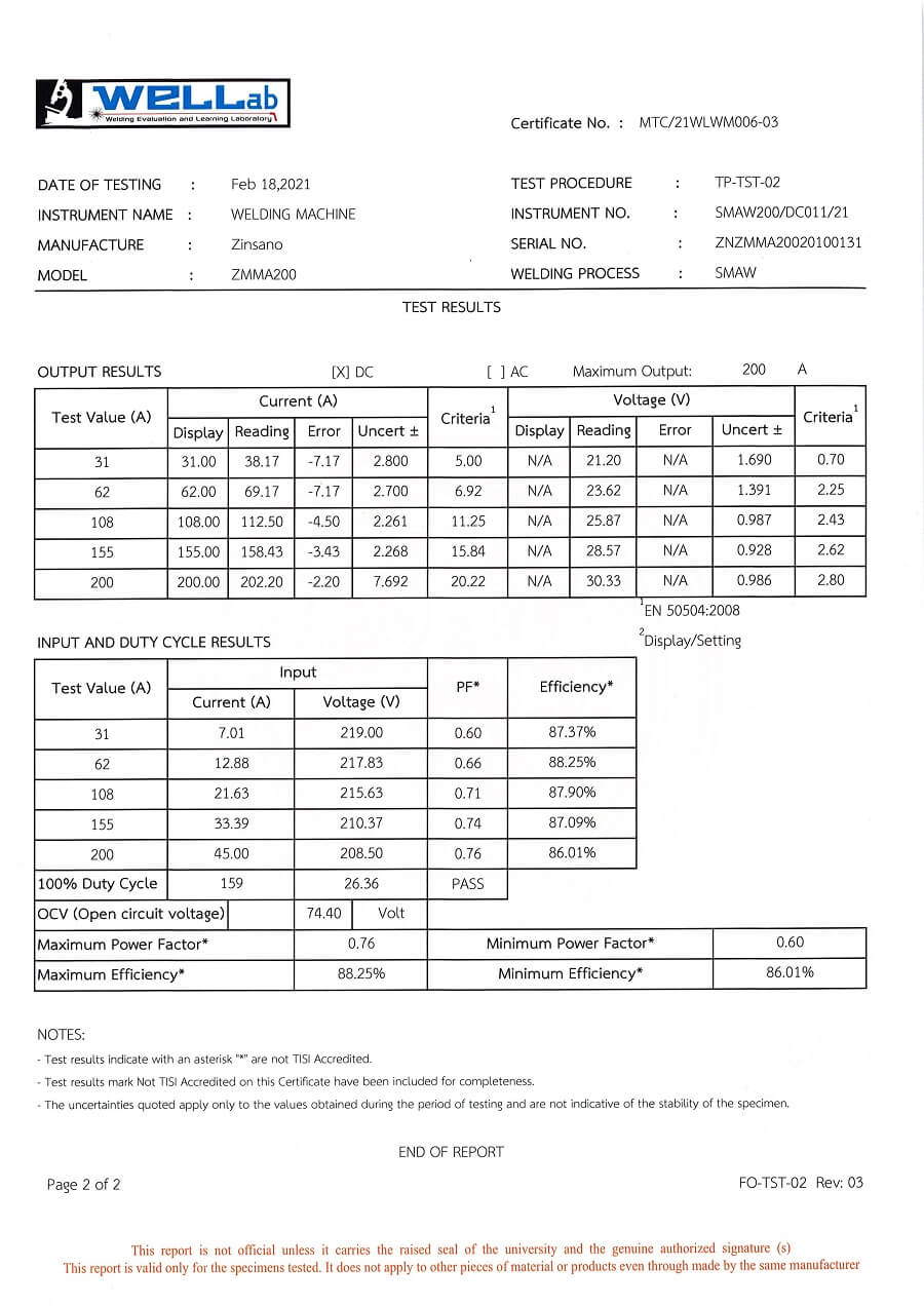 - กระแสเชื่อม 200 แอมป์เต็ม