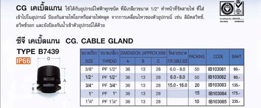 เคเบิ้ลแกน 3/8″ 12-15 mm B 7439 CG Cord Grip Cable Gland BLISS