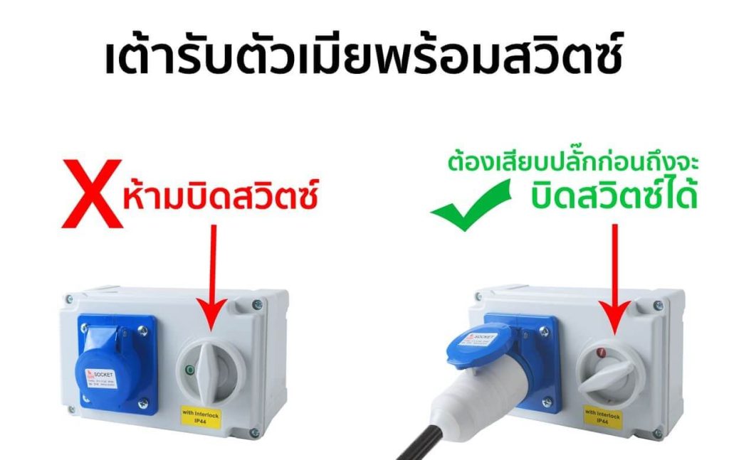 เต้ารับตัวเมียพร้อมสวิตซ์ 3P+E 16A 380V 3 Phase ตัวเมีย IP44 ใช้ในงานอุตสาหกรรม ทนความร้อนไม่ลามไฟ