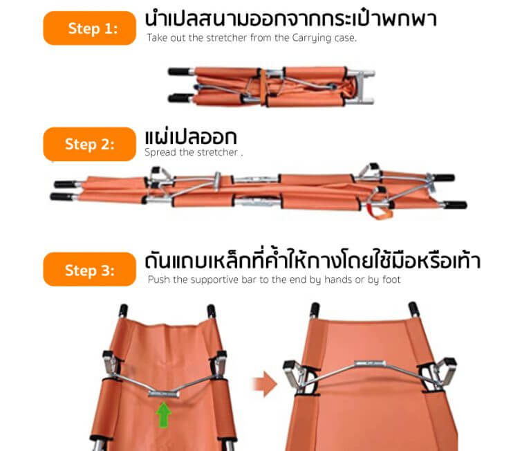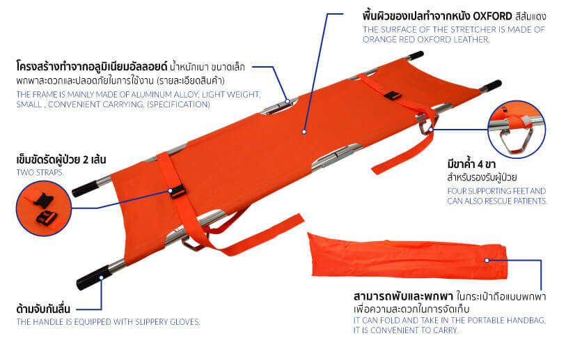 - พับได้ 2 ตอน มีน้ำหนักเบา สะดวกในการพกพา หรือเคลื่อนย้ายผู้ป่วย