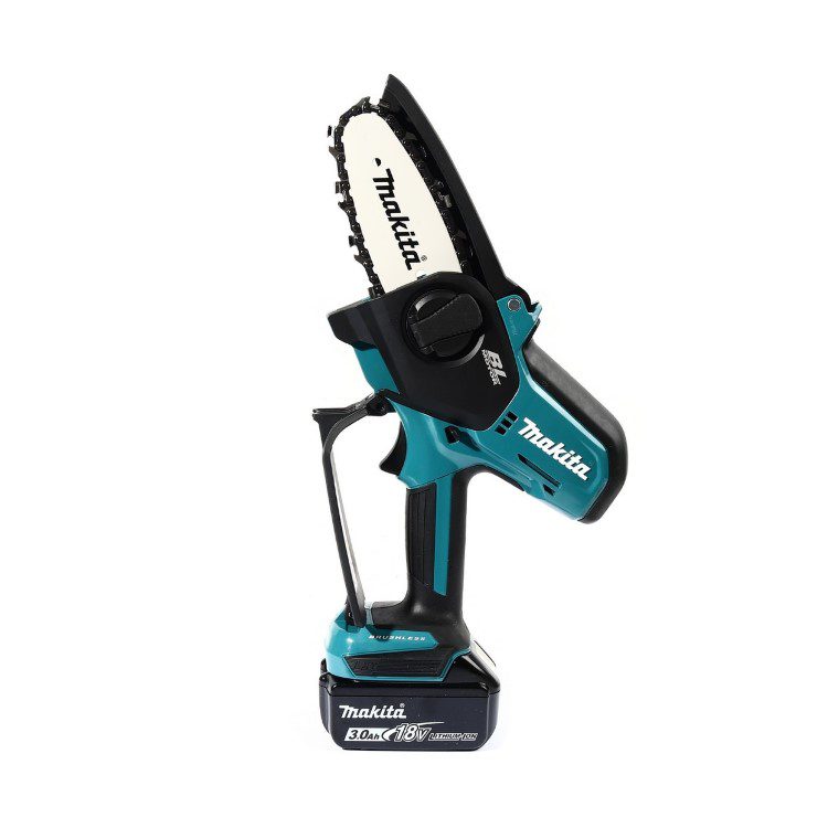 เลื่อยไฟฟ้าไร้สาย จากแบรนด์ MAKITA กำลังไฟฟ้า 18 โวลต์ ใบมีดมีความคม สามารถเลื่อยไม้ได้รวดเร็ว ประหยัดเวลาการทำงาน เหมาะสำหรับใช้งานตัดแต่งกิ่งต้นไม้ หรือแนวพุ่มไม้ริมรั้วภายในบ้าน, อาคารสำนักงาน หรือสวน ขนาดกะทัดรัด น้ำหนักเบา คุณสามารถถือใช้งานได้ด้วยมือเดียว เพิ่มความสะดวกในการเคลื่อนย้าย และใช้งานได้อย่างคล่องตัว ให้งานเสร็จรวดเร็วยิ่งขึ้น ภายในชุดมาพร้อมแบตเตอรี่และแท่นชาร์จ สามารถใช้งานได้ทันทีคุณสมบัติ เลื่อยโซ่ไร้สายประสิทธิภาพสูง ทำงานด้วยแรงดันไฟฟ้า 18 โวลต์