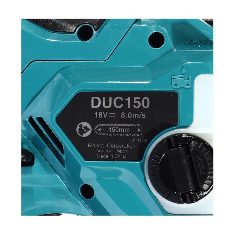 เลื่อยโซ่ไร้สาย 18 โวลต์ 6 นิ้ว รุ่น DUC150SF ความเร็วโซ่สูงสุด 8.0 เมตร/ วินาที ถังน้ำมัน 55 มล. มอเตอร์ BL รวมแบตเตอรี่-แท่นชาร์จ (มากีต้า)