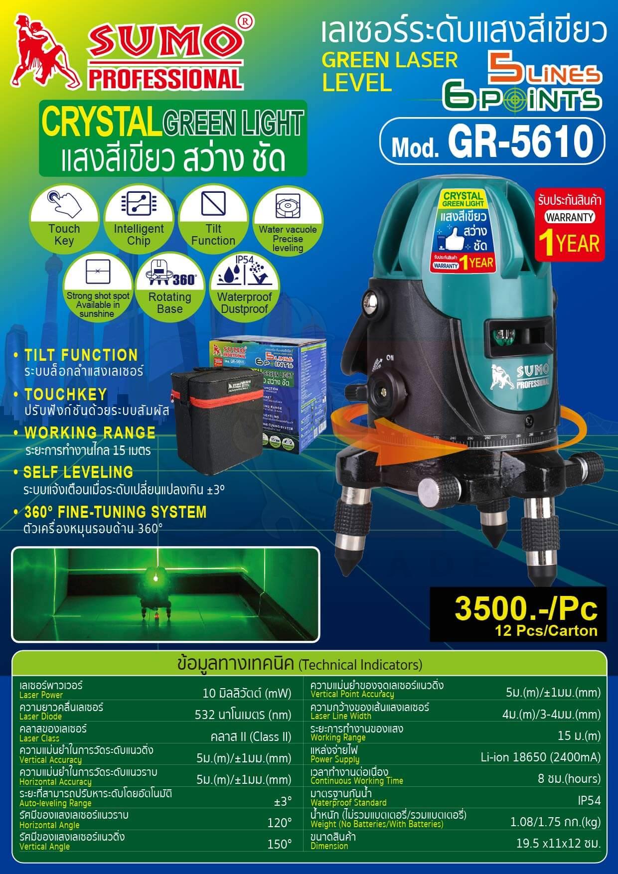 เลเซอร์ระดับแสงสีเขียว 5 เส้น 6 จุด รุ่น GR-5610 SUMO