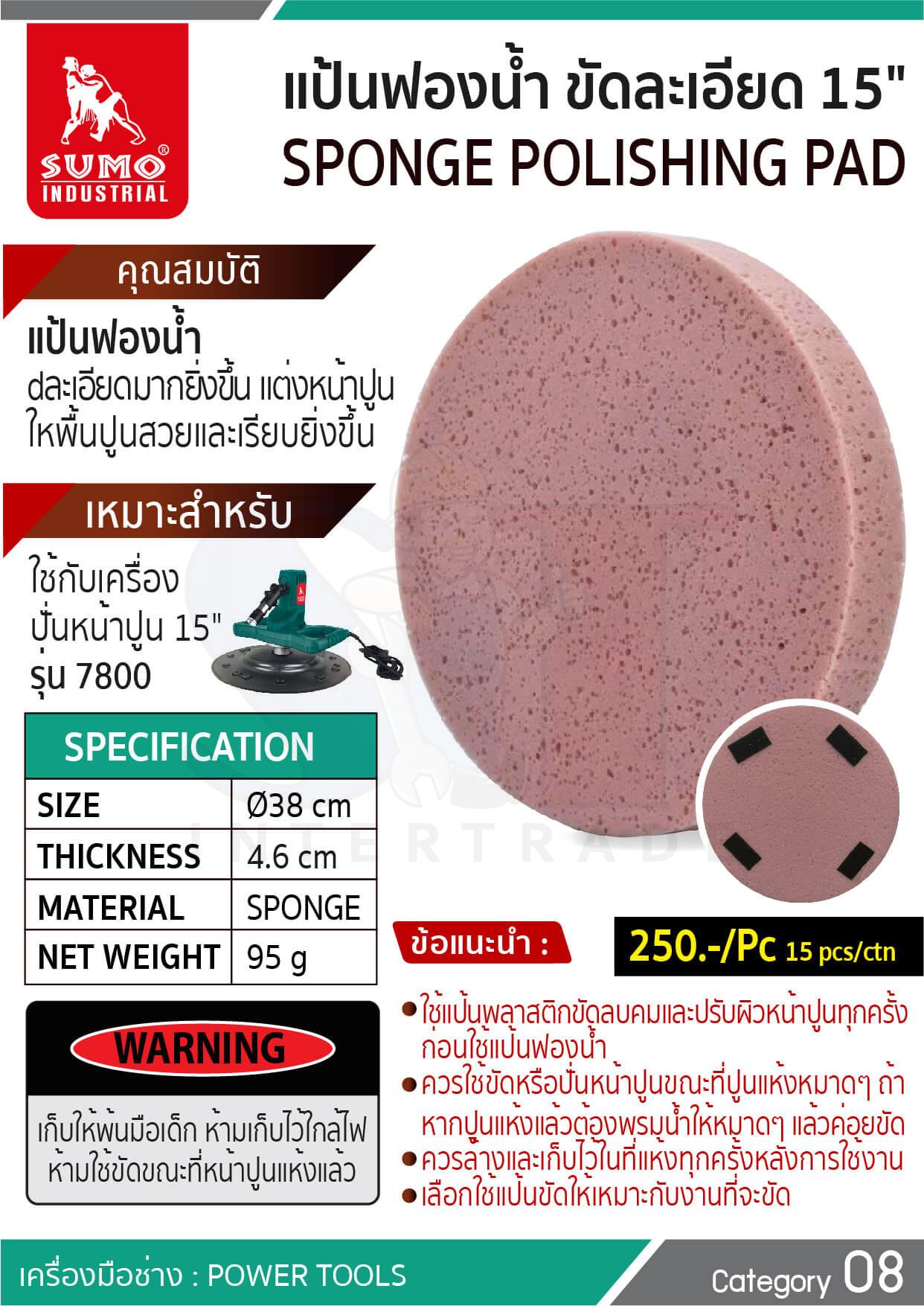 - แป้นฟองน้ำ ขัดละเอียด ใช้กับ เครื่องปั่นหน้าปูน 15" รุ่น 7800 SUMO