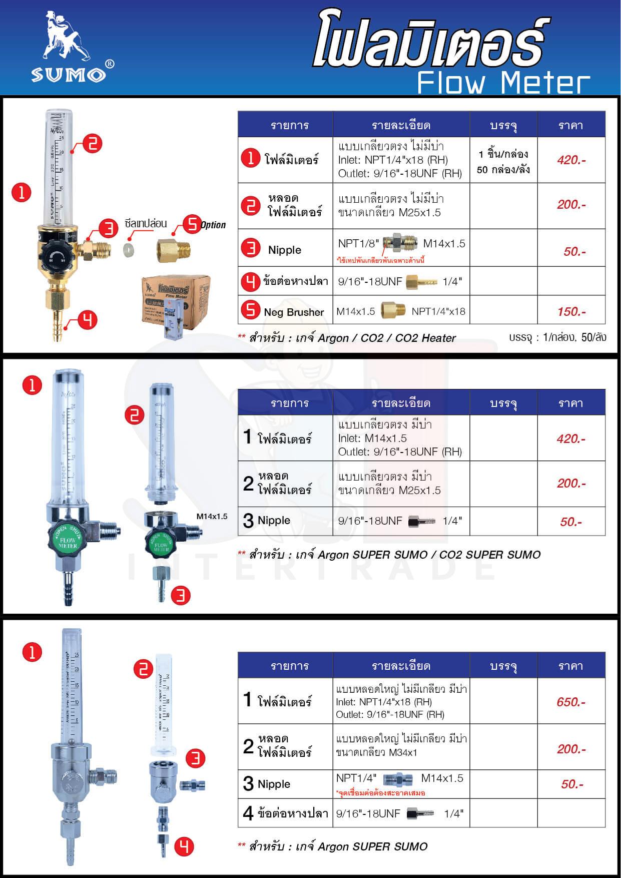 โฟลมิเตอร์ Argon/Co2 (เกลียวตรง, มีบ่า)