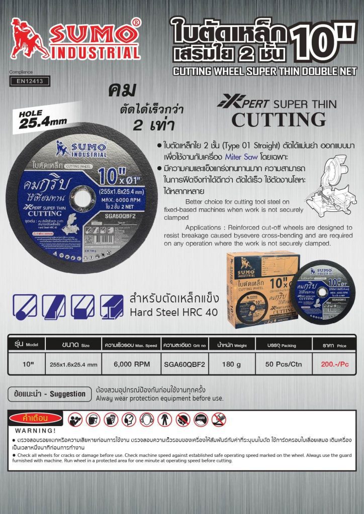 ใบตัด 10”x1.6×25.4 ใย 2ชั้น SUMO