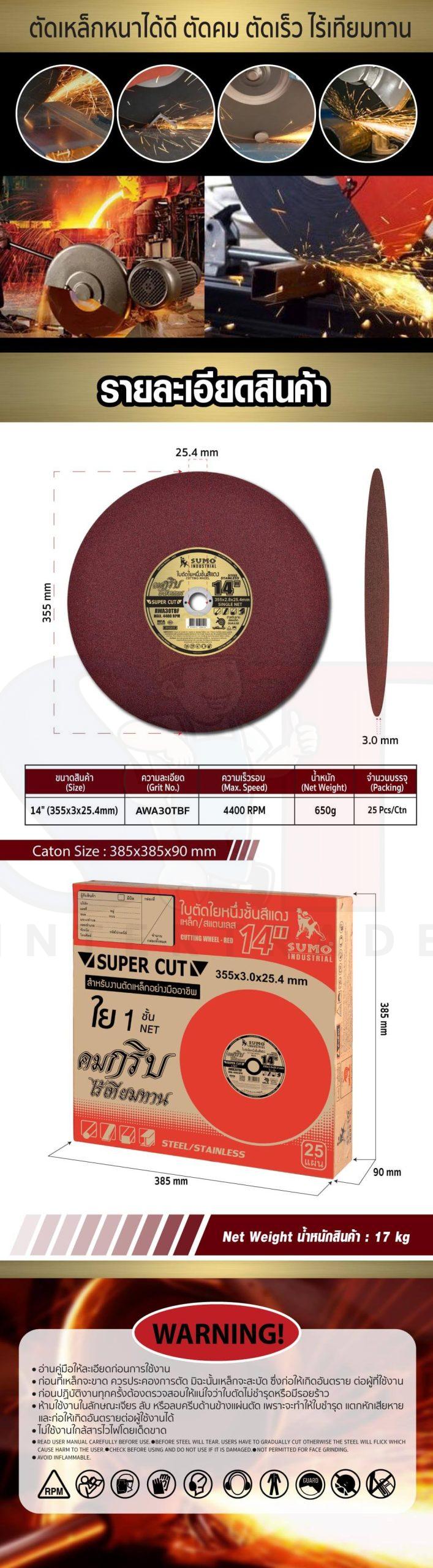 ใบตัด 14”x3x25.4 SUMO สีแดง