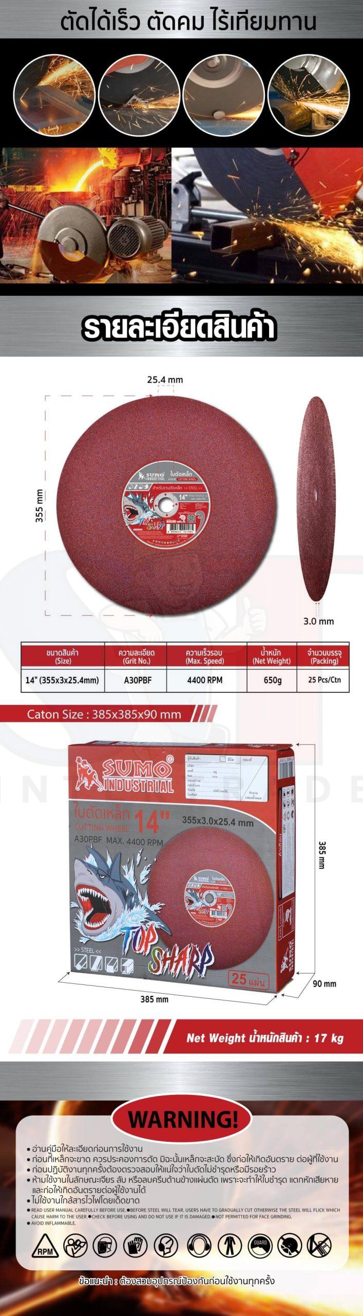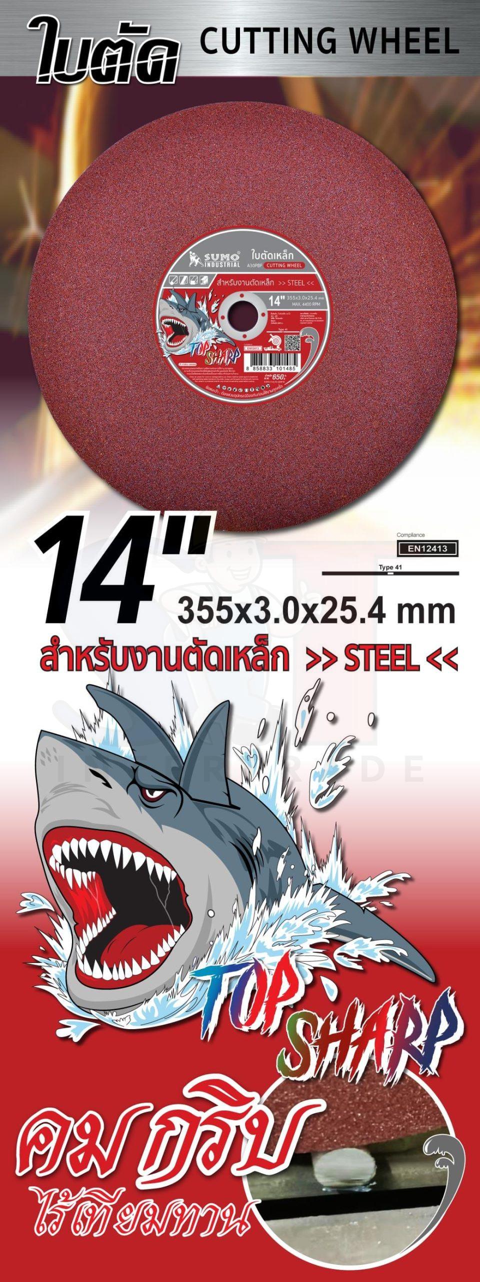 ใบตัดเหล็ก 14" (355x3x25.4mm) สีแดง SUMO (TOP SHARP)