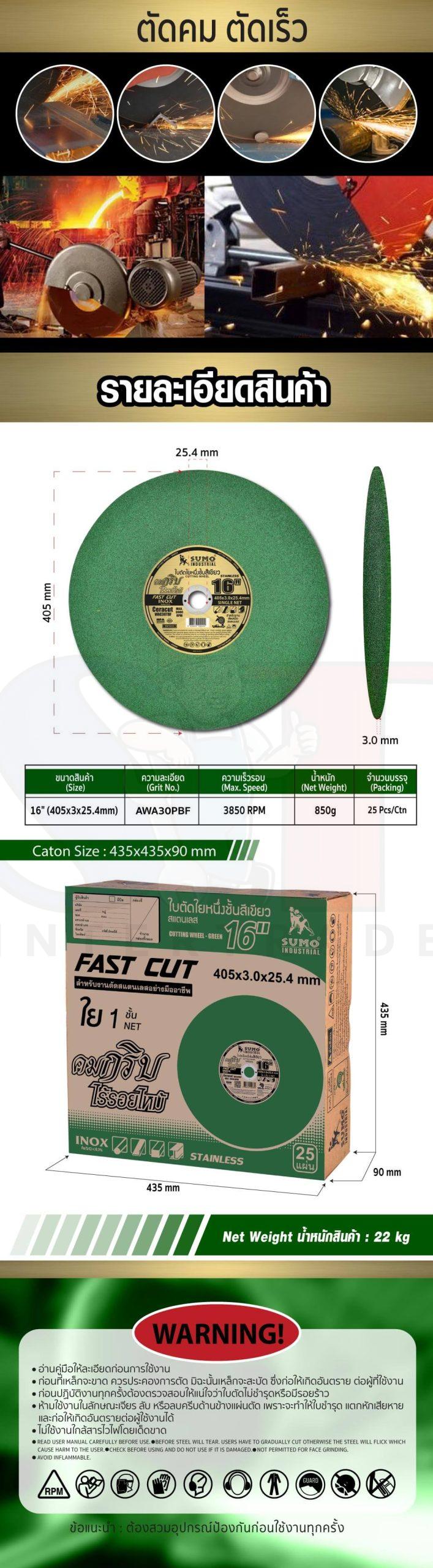ใบตัด 16″x3x25.4 SUMO สีเขียว