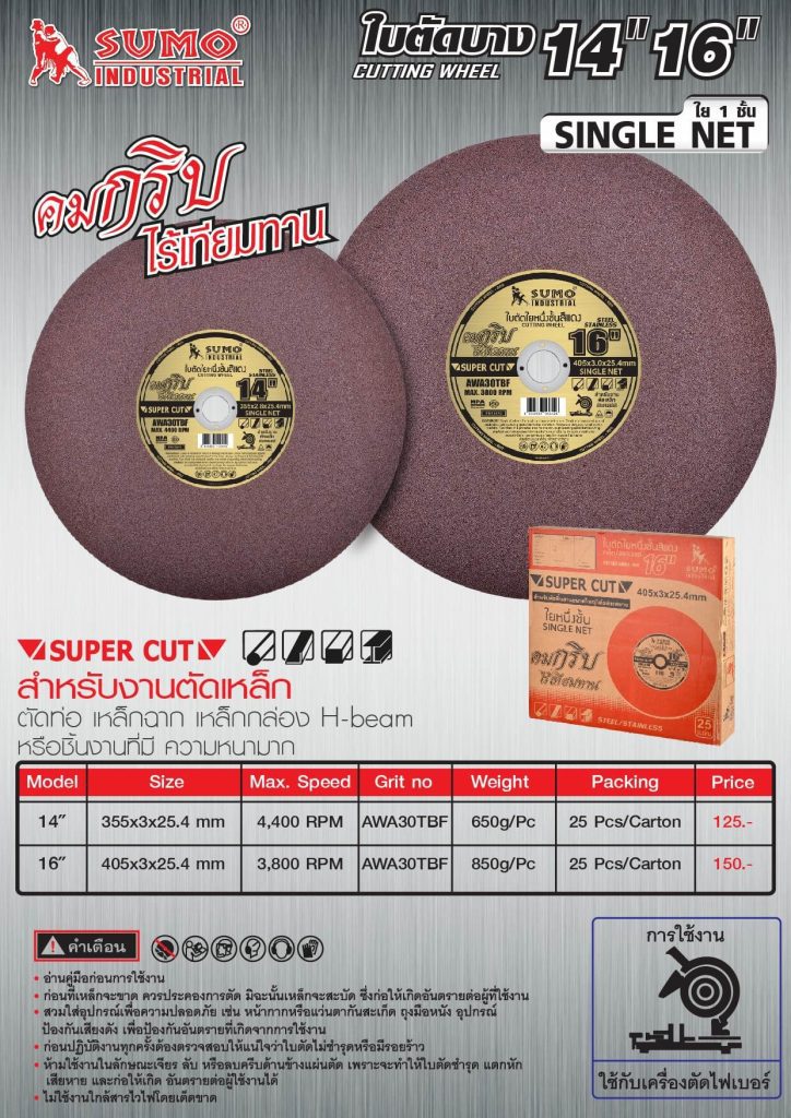 - ใช้สำหรับตัดเหล็ก/สแตนเลส ตัดเหล็กหนาได้ดี ตัดคม ตัดเร็ว ไร้เทียมทาน