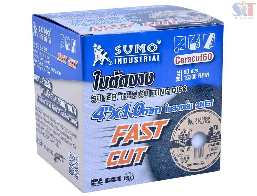 รายละเอียด ใบตัด 4”x1.0x16mm ใย 2 ชั้น Fast Cut SUMO