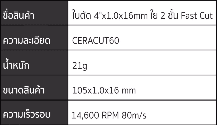 - ความหนาของแผ่นตัด : 1.0 มิล