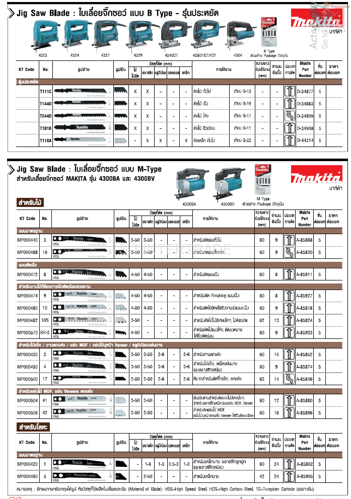 ใบเลื่อยจิกซอ NO.58(5ใบ/1PAC) รหัสสินค้า : MP000520