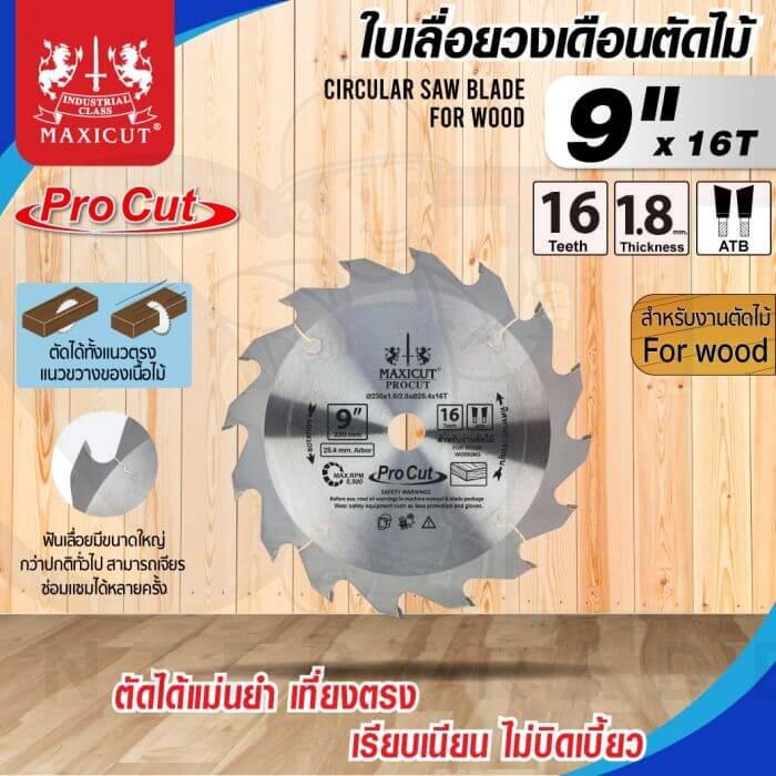 ใบเลื่อยวงเดือน size : 9″x16T MAXICUT Procut