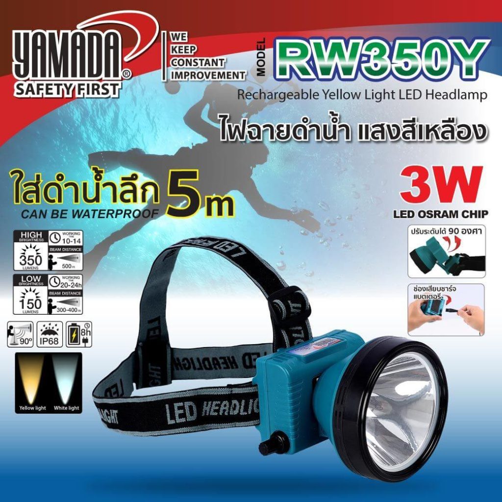 - ไฟฉายดำน้ำ แสงสีเหลือง รุ่น RW350Y