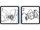 - Find the filter cartridges arrow mark,aligned with the masks bodys arrow mask, then fasten.