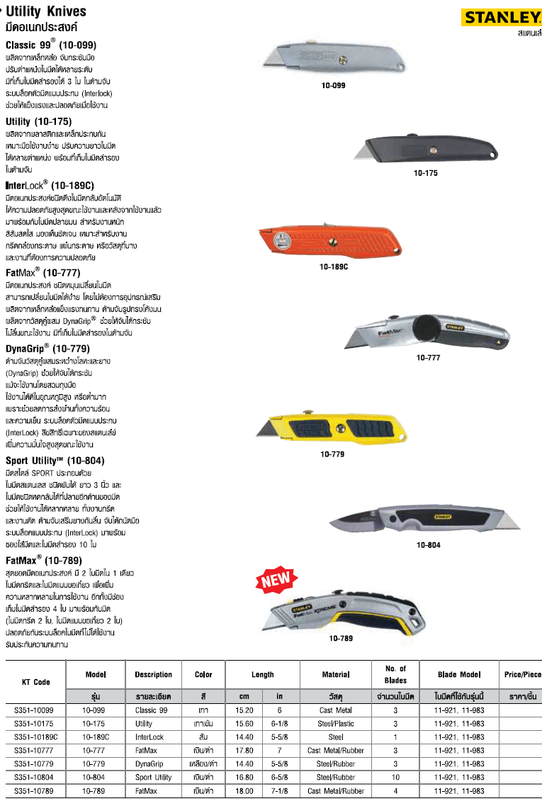 มีที่เก็บใบมีดสำรองได้ 3 ใบ ในด้ามจับ ระบบล็อคตัวมีดแบบประกบ