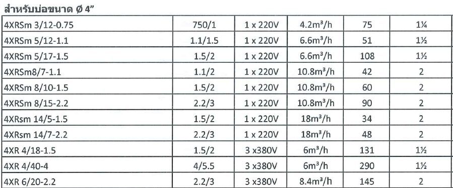 ขนาดเส้นผ่าศูนย์กลางของบ่อสูงสุด  4″