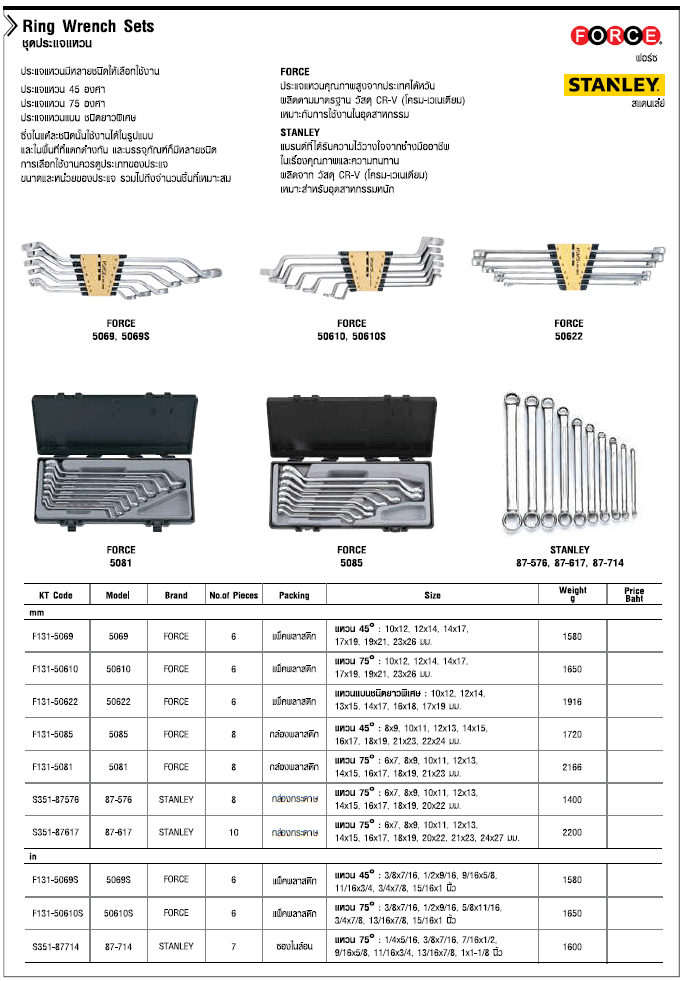 5069 ชุดประแจแหวน 45 องศา 6 ชิ้น