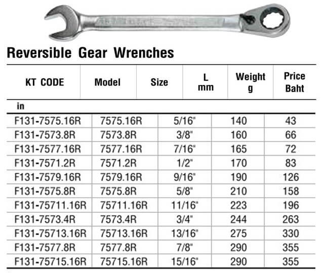 75715.16R ประแจเกียร์ ปรับซ้ายขวา 15/16″