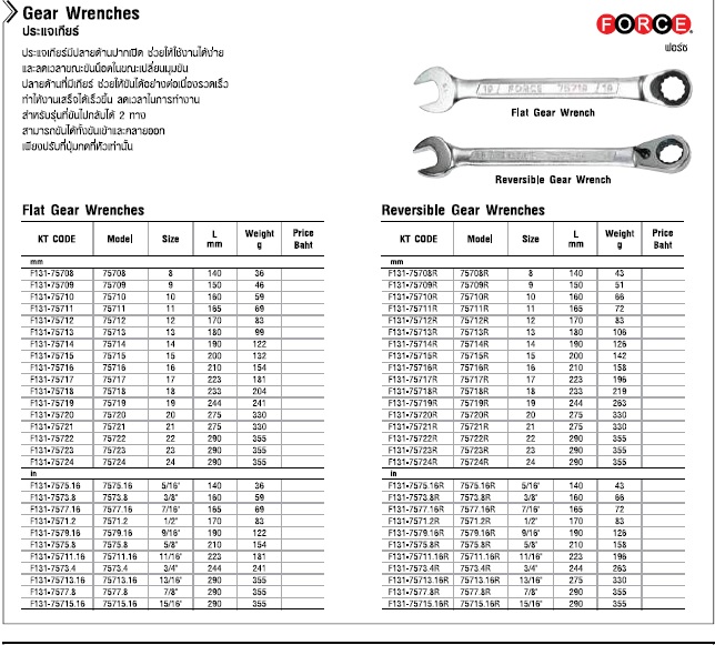 หมวดสินค้า ประแจเกียร์ 2 ทาง (มม.)
