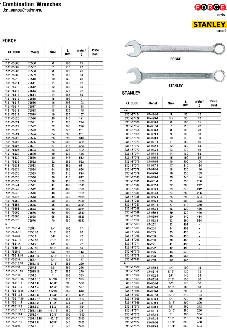 หมวดสินค้า ประแจแหวนข้างปากตาย (มม.)