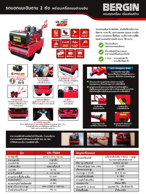 BERGIN รถบดถนนเดินตาม รุ่น VR750H