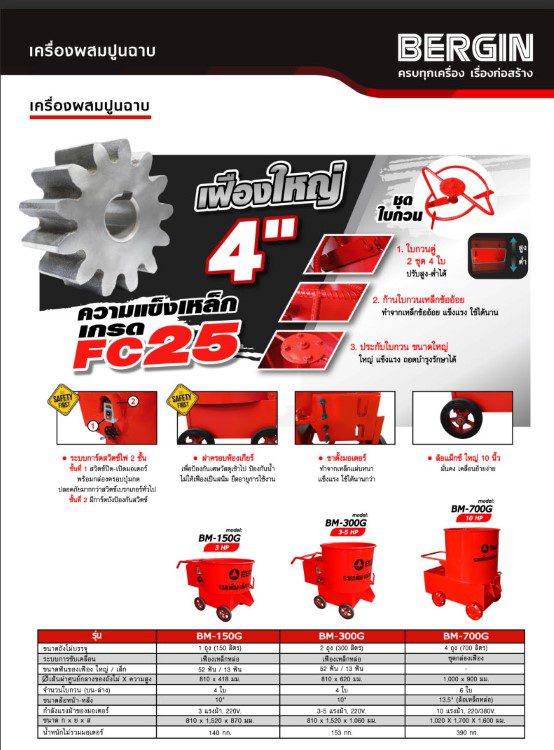 เครื่องผสมปูนฉาบ BM-150G พร้อมมอเตอร์ 3HP 220V