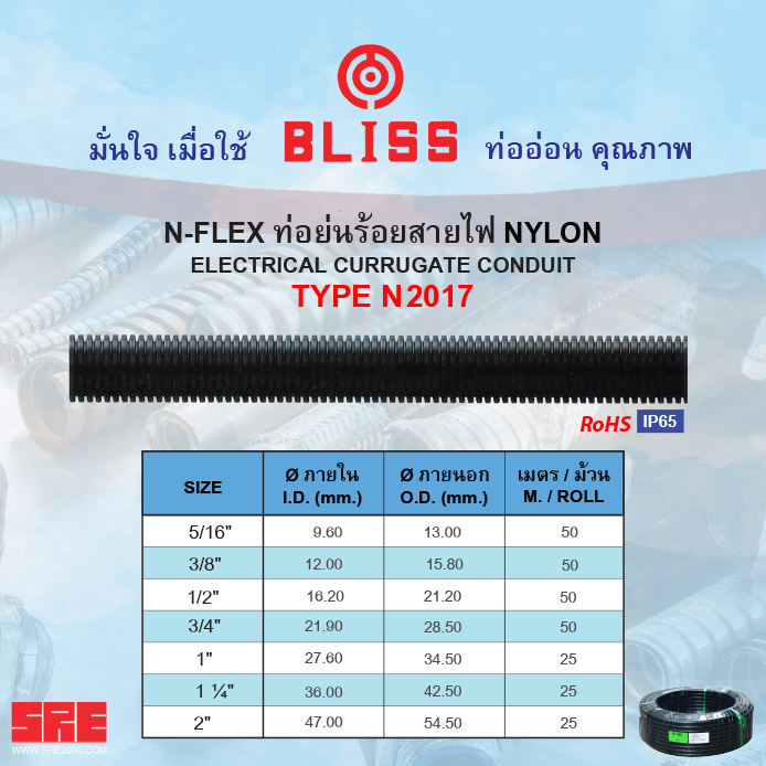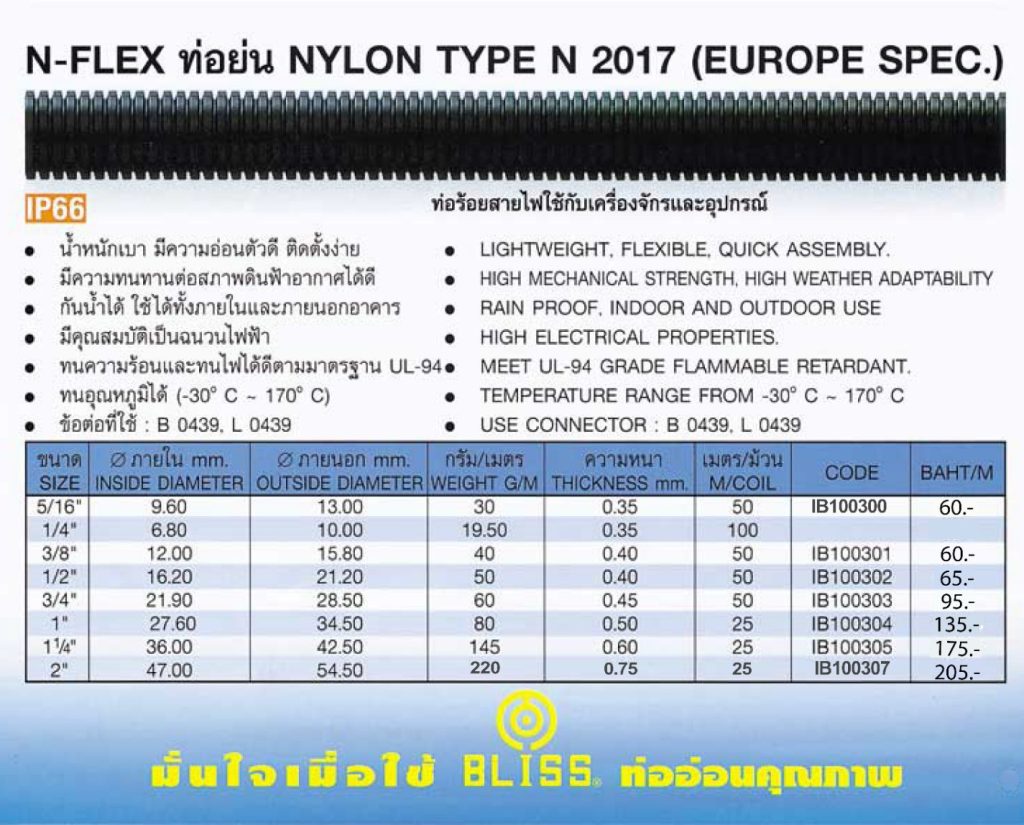 BLISS ท่อร้อยสายไฟใช้กับเครื่องจักรและอุปกรณ์ รุ่น N2017 (N-FLEX)