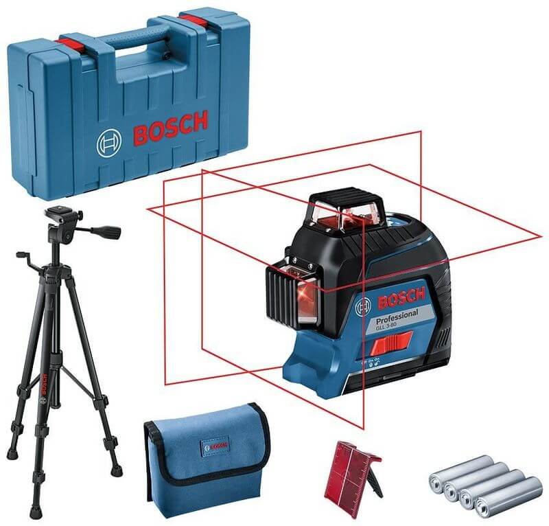 สุดยอดสำหรับนวัตกรรมเครื่องวัดระดับ (Multi Line Laser) และกำหนดแนวเส้นด้วยแสงเลเซอร์ใหม่ล่าเซอร์ตัวใหม่ล่าสุด Bosch รุ่น GLL3-80P เลเซอร์กำหนด 3 แนวเส้นสำหรับงานติดตั้งภายในอาคาร โดยแสงเลเซอร์ที่ยิงออกมาเป็น เส้น 3 X 360 องศา ตัดกัน ทั้งแนวตั้งและ แนวนอน ทำให้เกิด แนวเส้นแกน X และแกน Y ตัดกันของทุกระนาบ รอบห้อง ถึง 6 ระนาบ นอกจากนี้แล้ว จุดตัดของแสงเลเซอร์ ยังใช้ในการถ่ายแนว ถ่ายดิ่ง ได้อีกด้วย ซึ่งช่วยเพิ่มประสิทธิภาพให้กับการทำงาน ทั้งความสะดวก แม่นยำ และรวดเร็วเหมาะกับช่างมืออาชีพเป็นอย่างมาก ไม่ว่าจะเป็นวางแนวและมุม งานก่อผนังกำแพง งานติดตั้งฝ้าเพดาน งานติดตั้งไฟ งานกั้นห้อง กระเบื้อง ประตู หน้าต่าง และงานอื่น ๆ อีกมากมาย ได้ในเครื่องเดียวจากมืออาชีพ เพื่อมืออาชีพ เลเซอร์กำหนดแนวเส้น 360 องศา 1 แนวนอน 2 แนวตั้ง ช่วงในการทำวงานที่หลากกลายเป็นเรื่องง่ายไม่ว่าจะเป็นงานวางแนว กำหนดมุม กำหนดจุด กำหนดระดับ ภายในอาคาร รูปทรง ขนาด และน้ำหนัก ง่ายต่อการใช้งาน ทนทาน มาตรฐาน IP 54 เพื่องการทำงานที่มีประสิทธิภาพสูงสุด ตีเส้นระดับแนวนอน ตีเส้นระดับแนวตั้ง กำหนดวางแนว ตีเส้นวางระดับ