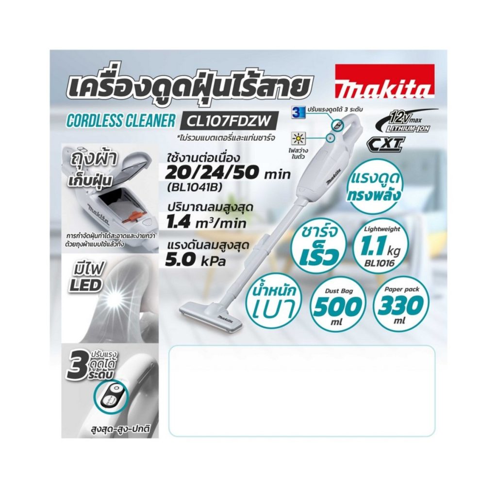ข้อมูลทางเทคนิค : Makita รุ่น CL107FDZW (12V. MAX)