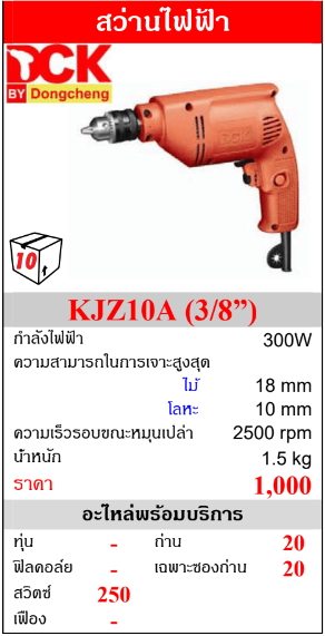 DCK KJZ 10A สว่านไฟฟ้า 10mm (3/8″) 300W 2500rpm
