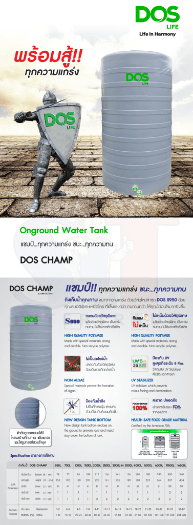 แชมป์!! ทุกความแกร่ง ชนะ..ทุกความทน ถังเก็บน้ำคุณภาพ เอาชนะทุกความแกร่ง ทนทานเป็นยอด ด้วยวัสดุใหม่ล่าสุด DOS S950 คุณสมบัติพิเศษเหนือใครที่แข็งแกร่งกว่า ทนทานกว่า ให้คุณได้มั่นใจได้ยิ่งขึ้น
