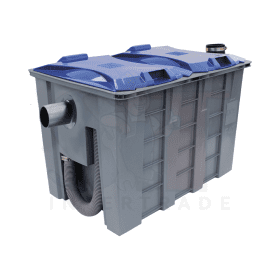 2. ส่วนแยกไขมัน ถูกออกแบบให้เหมาะสมกับทิศทางการไหลของน้ำ และรูปร่างถังจึงมีประสิทธิภาพในการแยก และสกัดไขมันให้ลอยอยู่เหนือผิวน้ำ