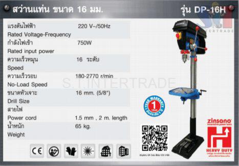 DP-16H – สว่านแท่น ขนาด 16 มม. ZINSANO