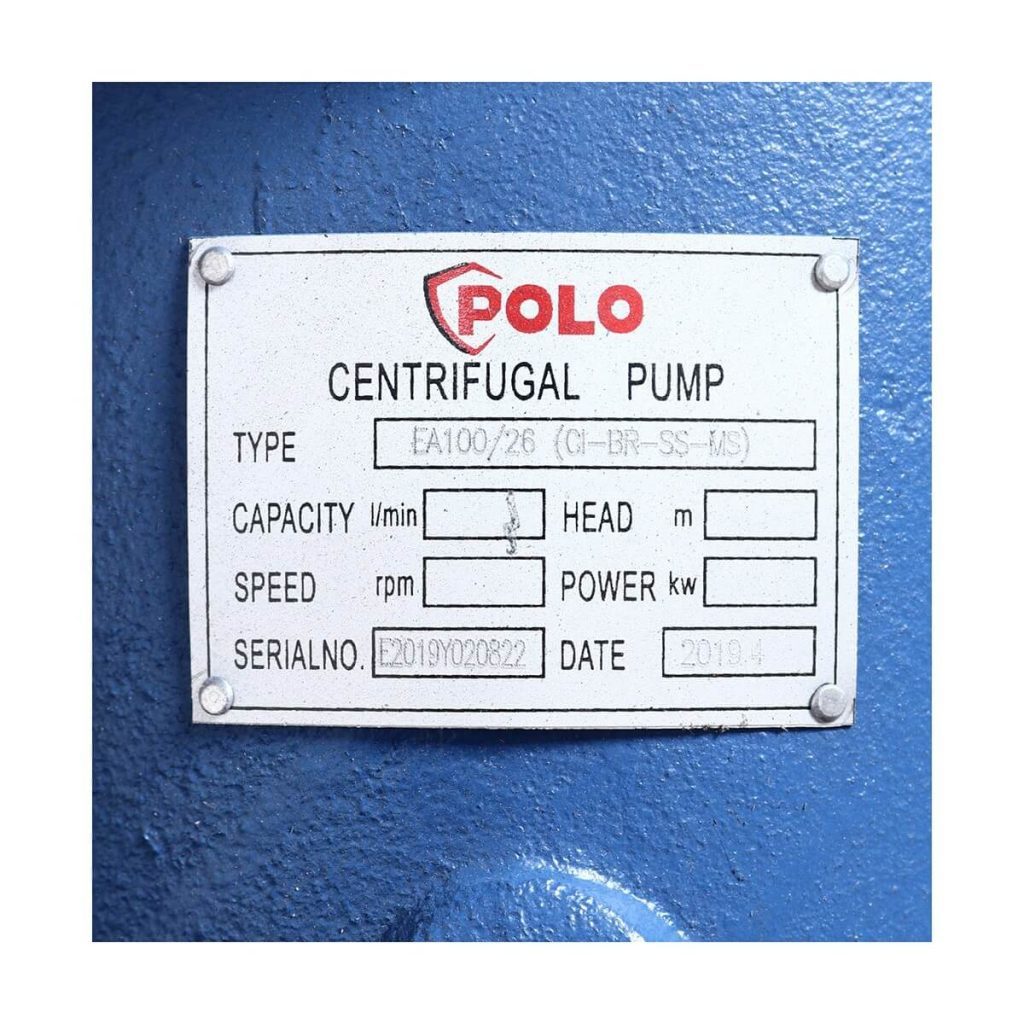 POLO ปั๊มเพลาลอย 380V รุ่น EA100/26 มอเตอร์ 20/180 แรง ปริมาณน้ำ 180/396 ลบ.ม./ชม. ส่งสูง 25/102 ม. ท่อ 125X100 มม. (โปโล)