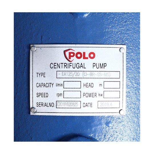 POLO ปั๊มเพลาลอย 380V รุ่น EA125/20 มอเตอร์ 15/100 แรง ปริมาณน้ำ 252/450 ลบ.ม./ชม. ส่งสูง 15/60 ม. ท่อ 150X125 มม. (โปโล)