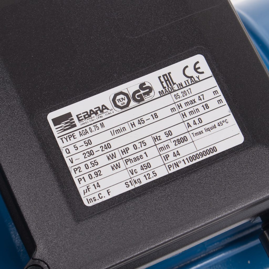 EBARA AGA-0.75M ปั๊มน้ำหอยโข่งล่อน้ำด้วยตนเอง 0.75HP