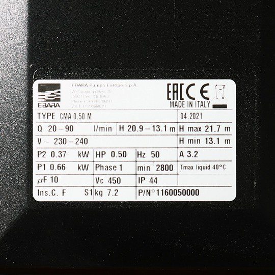 EBARA ผลิตจากประเทศอิตาลี จากการพัฒนาด้วยประสบการณ์เเละความเชี่ยวชาญ