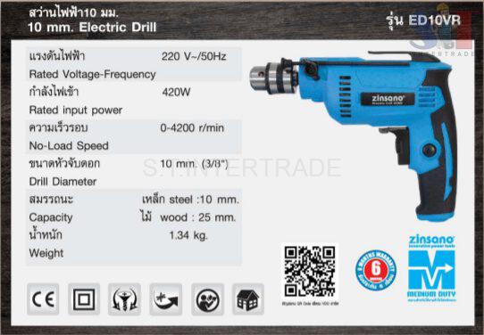 ZINSANO – สว่านไฟฟ้า 10 มม. รุ่น ED10VR