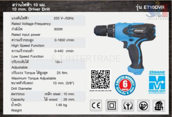 ET10DVR – สว่านไฟฟ้า 10 มม. ZINSANO