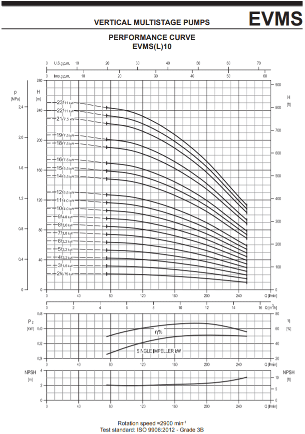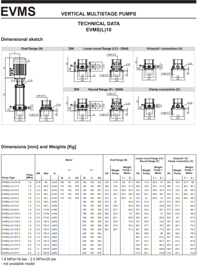 EVMS10 2N5/0.75 ปั๊มน้ำหลายใบพัดแบบตั้ง